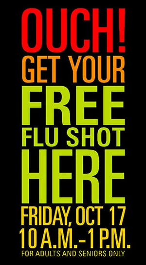 Flu shots can hurt a little sometimes. For this poster, I tried to address this fear head on with humor utilizing colors from the the Pratt Library palette combined with easy-to-read typography. A flu shot may hurt a little. but in this instance it was free, and could save someone’s life. Pratt Library, Baltimore